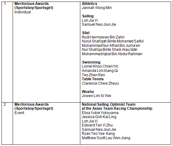 Meritorious Awards (Sportsboy/Sportsgirl)